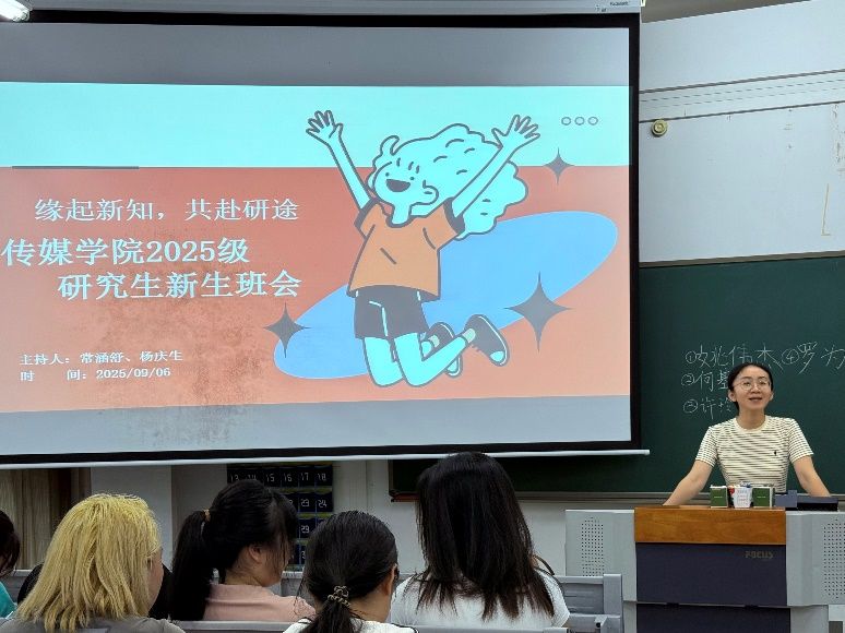 9月6日晚,我院2025级研究生新生班会在明德楼313教室举行。本次班会以“缘起新知,共赴研途”为主题,由新生班级助理2024级新闻与传播专业研究生常涵舒与杨庆生主持。班主任周唯、bw必威西汉姆联研究生会主席团成员2024级新闻与传播专业研究生卢姗姗、2025级新闻与传播专业和2025级戏剧与影视专业全体新生出席了本次班会,来自五湖四海的新生将共同在bw必威西汉姆联开启学术研究与专业探索新篇章