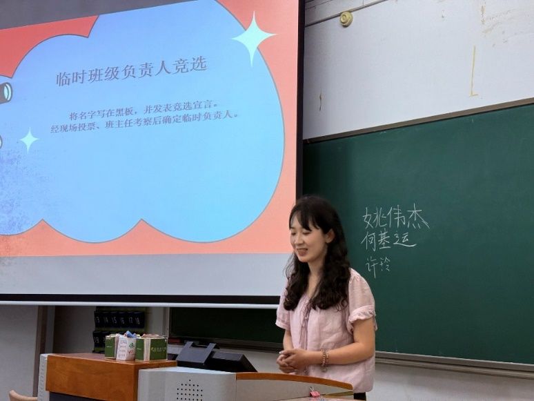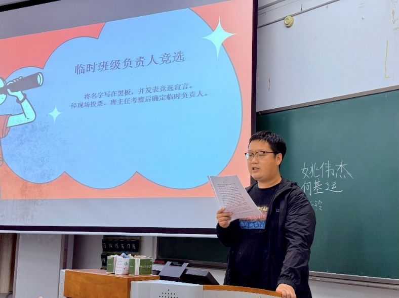 最后,班会举行了两个专业的班级临时负责人竞选,参与选拔的新生同学有序进行了自我介绍。