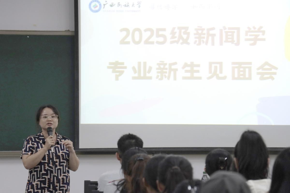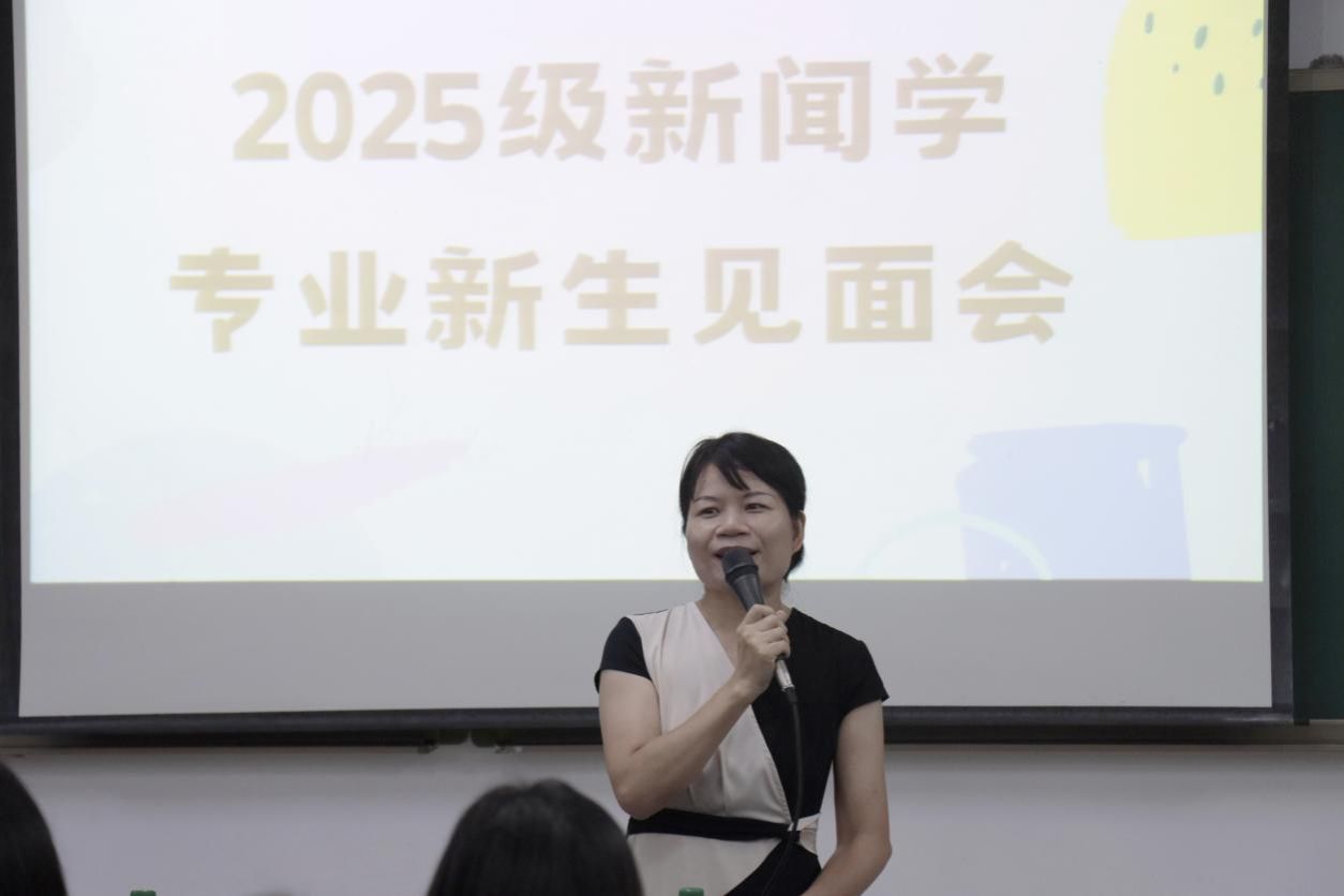 10月14日晚上,2025级新闻学专业新生见面会在明德楼410教室召开。新闻学专业负责人吴兰,新闻学教研室专任教师以及2025级全体新生参加此次见面会。此次见面会由新闻学教研室主任钱芷涵主持。