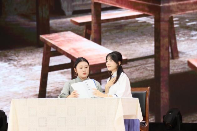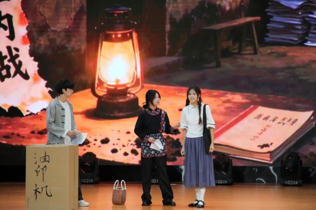 微话剧《仗》作为本次活动的特别节目,由我院播音与主持艺术专业学生与民大附小徐稚善同学共同演绎。剧中,一段几乎被历史尘埃掩埋的抗战“小事”被重新唤醒:烽火连天的岁月里,一群没有留下姓名的战士,为了护佑一名普通村民女孩平安回到家乡,在与敌人的周旋与抗争中,毅然选择以生命为屏障,用热血践行守护的承诺,谱写了一曲直抵人心、荡气回肠的赞歌,将现场气氛推向高潮。