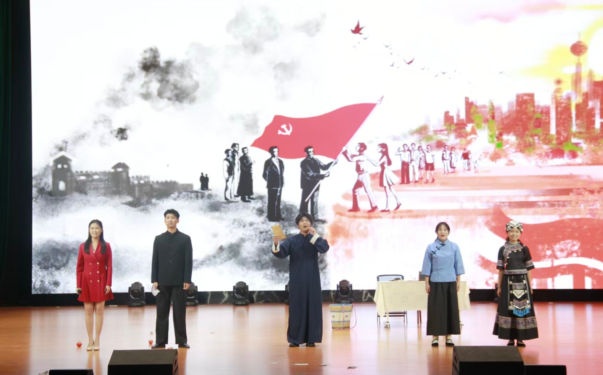本次活动评委黄春平在总结中充分肯定了同学们的积极性与创造力。他结合现场作品呈现情况提出具体建议:一是部分作品需进一步紧扣核心主题,确保红色叙事方向精准;二要严格注重历史事实的真实性与准确性,杜绝脱离史实的艺术加工,以对历史的敬畏之心讲好红色故事;三要强化表演中服装、音乐、道具等细节的严谨性,需通过细节优化提升舞台整体感染力。同时,他寄语同学们在后续创作中深入挖掘红色精神内涵,力求作品 “有情、有景、有思”,真正让红色故事直抵人心、代代相传。