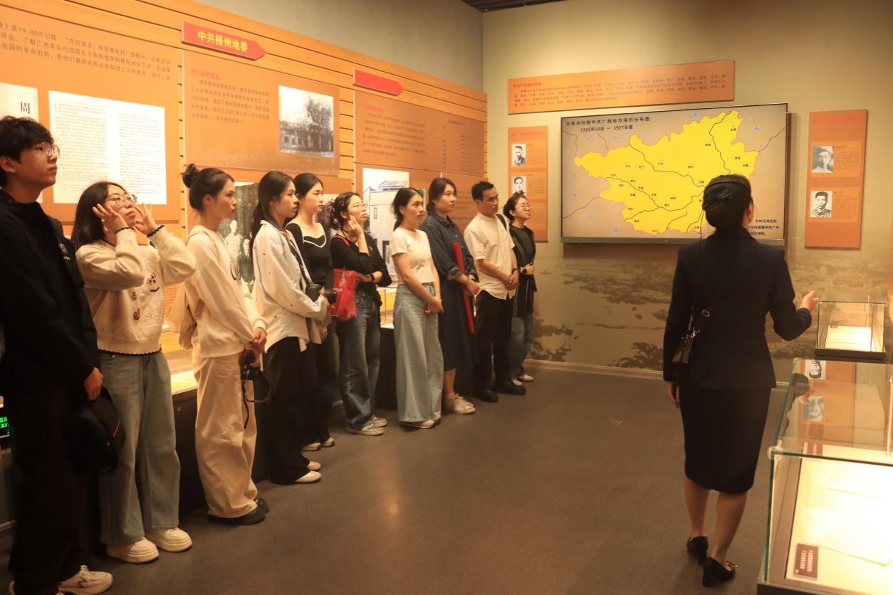 在梧州实践调研的首日,团队既以红色场馆沉浸式学习筑牢精神根基,又借宝石博物馆挖掘地方文化创意,二者深度融合的实践新路径,让整场研学调研既饱含思想厚度,又具备扎实的实践价值,为后续的科研教学工作积累了宝贵经验。
