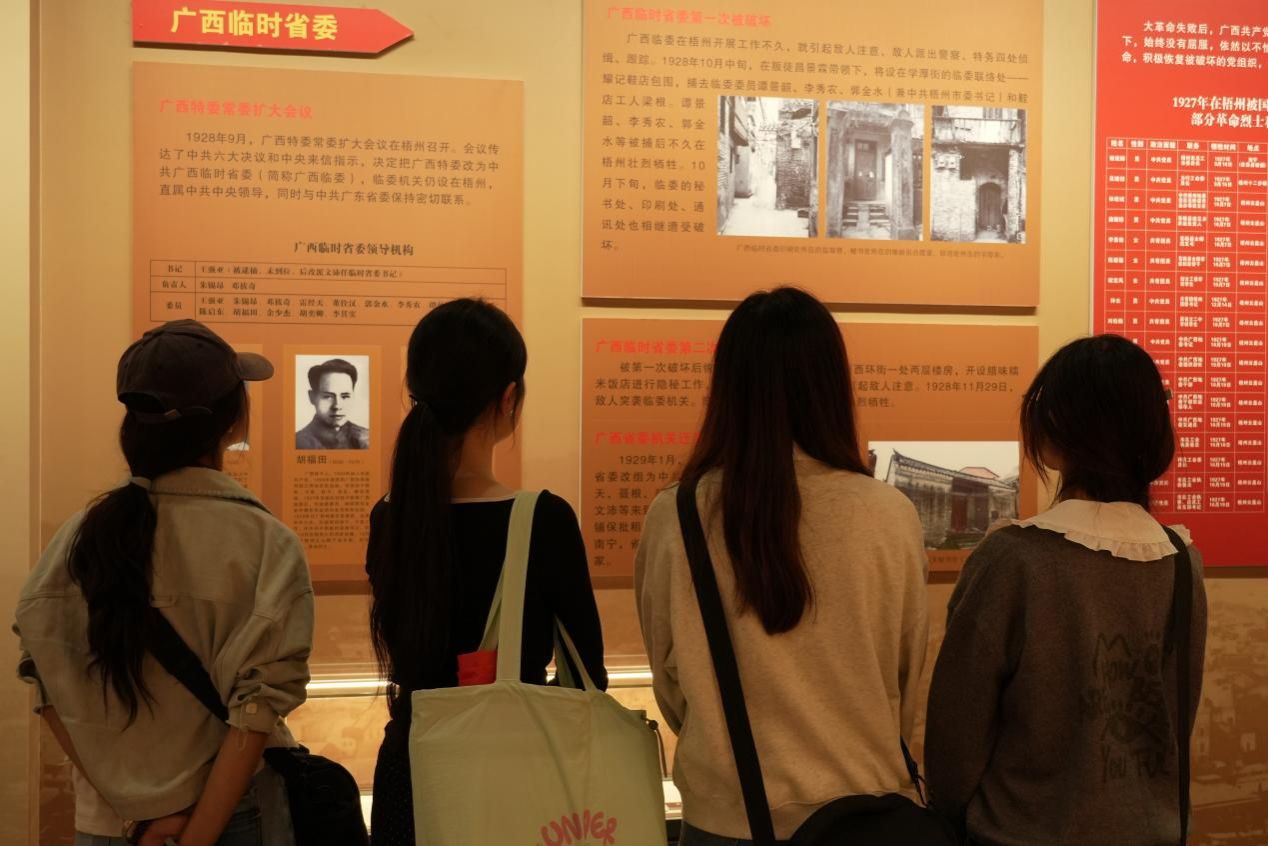 调研团队走进中共梧州地委、广西特委旧址陈列馆开展参观学习。在讲解员引导下,团队成员系统学习“建立地方党组织”“发动工农运动”“开展武装斗争”等核心内容;旧照片、实物与泛黄书籍等展品,既是历史的生动见证,更还原了1921至1929年间,中共党组织带领广西人民投身反帝反封建斗争的英雄篇章,让红色记忆愈发鲜明。