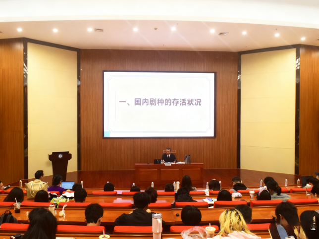讲座伊始,张福海向参会师生介绍了国内剧种的存活状况,肯定了部分剧种在传承与发展上的积极实践,如浙江婺剧以经典曲目的创新改编收获观众青睐,江苏昆曲借《青春版牡丹亭》重拾大众关注等,这些多元化的实践案例,为当下剧种的存续与发展提供了可借鉴化思路。他指出,国内剧种整体处于严峻困境:在全国现存的348个剧种中,虽有170个被列入国家级非物质保护遗产,但平均每年仍有2.9个剧种无声消失,存在着剧本存量庞大但可演作品稀缺、专业人才流失严重、传承模式断裂等现实难题。