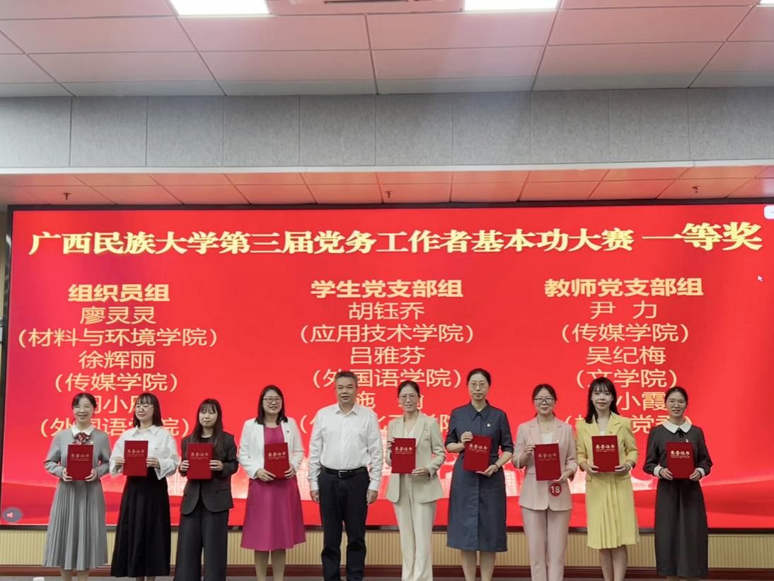 为深入学习贯彻《中国共产党普通高等学校基层组织工作条例》,推动落实基层党建“五基三化”巩固年行动,切实提升学校党务工作者履职能力和工作水平,2025年11月7日至8日,广西民族大学第三届党务工作者基本功大赛在相思湖校区顺利举行。我院教工第二党支部书记尹力、学生第二党支部书记徐辉丽参赛。