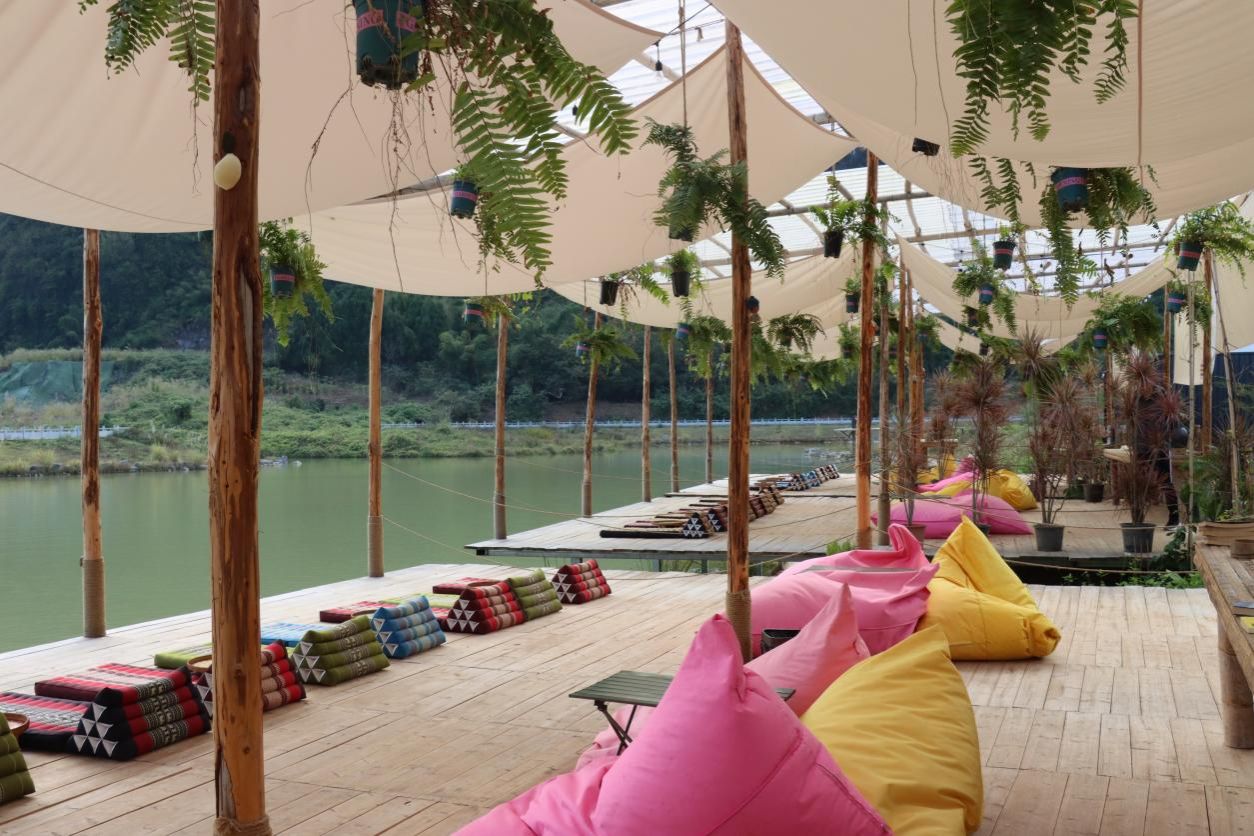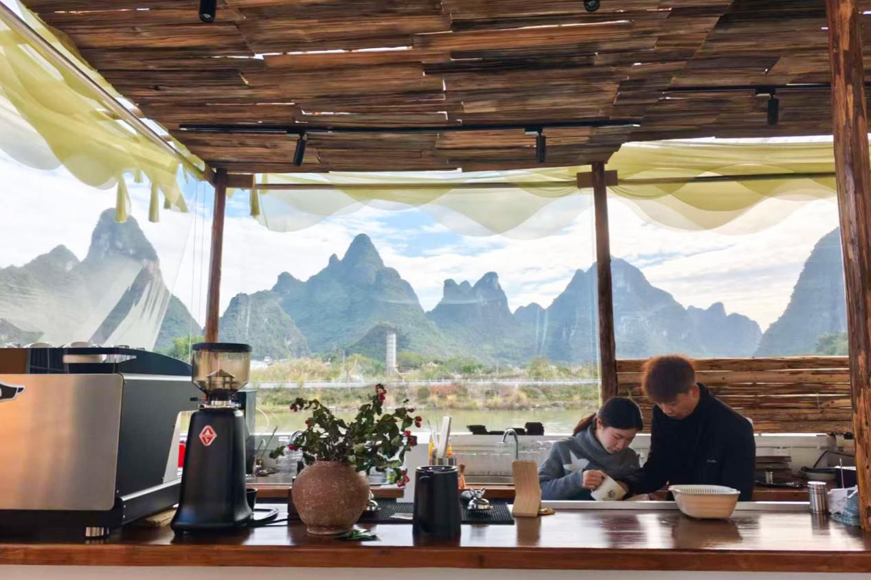 敲键盘的间隙能瞥见竹筏穿桥而过