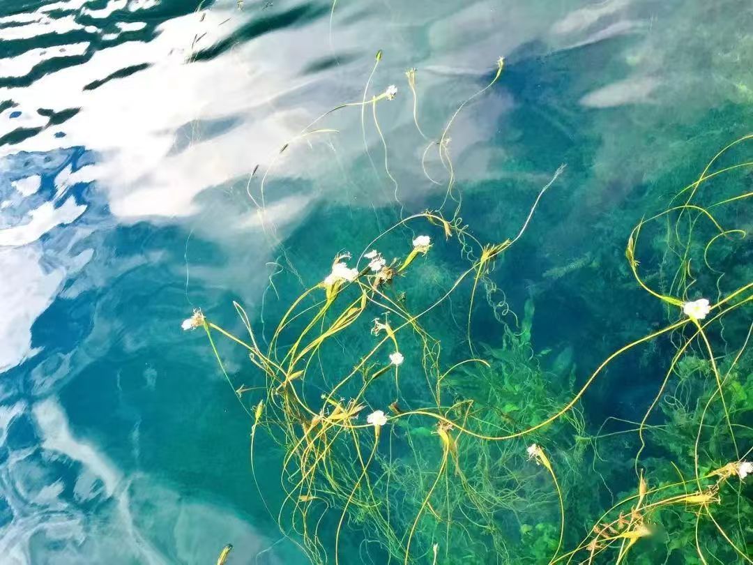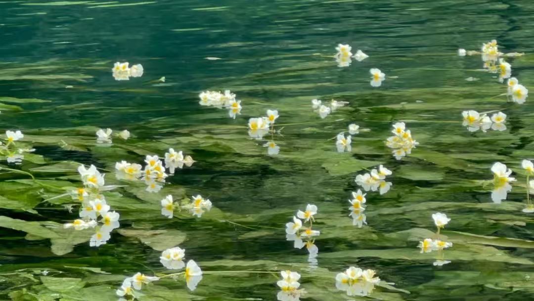 水面漂浮着星星点点的海菜花