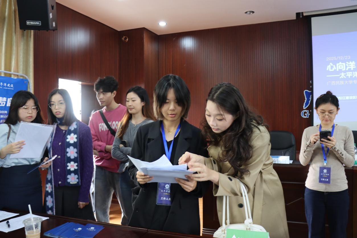 宣讲会最后,唐恬恬团队邀请学生现场登记信息、投递简历并参与面试,同时公布了“太平洋文化”“太平洋HR”公众号等信息查询渠道。