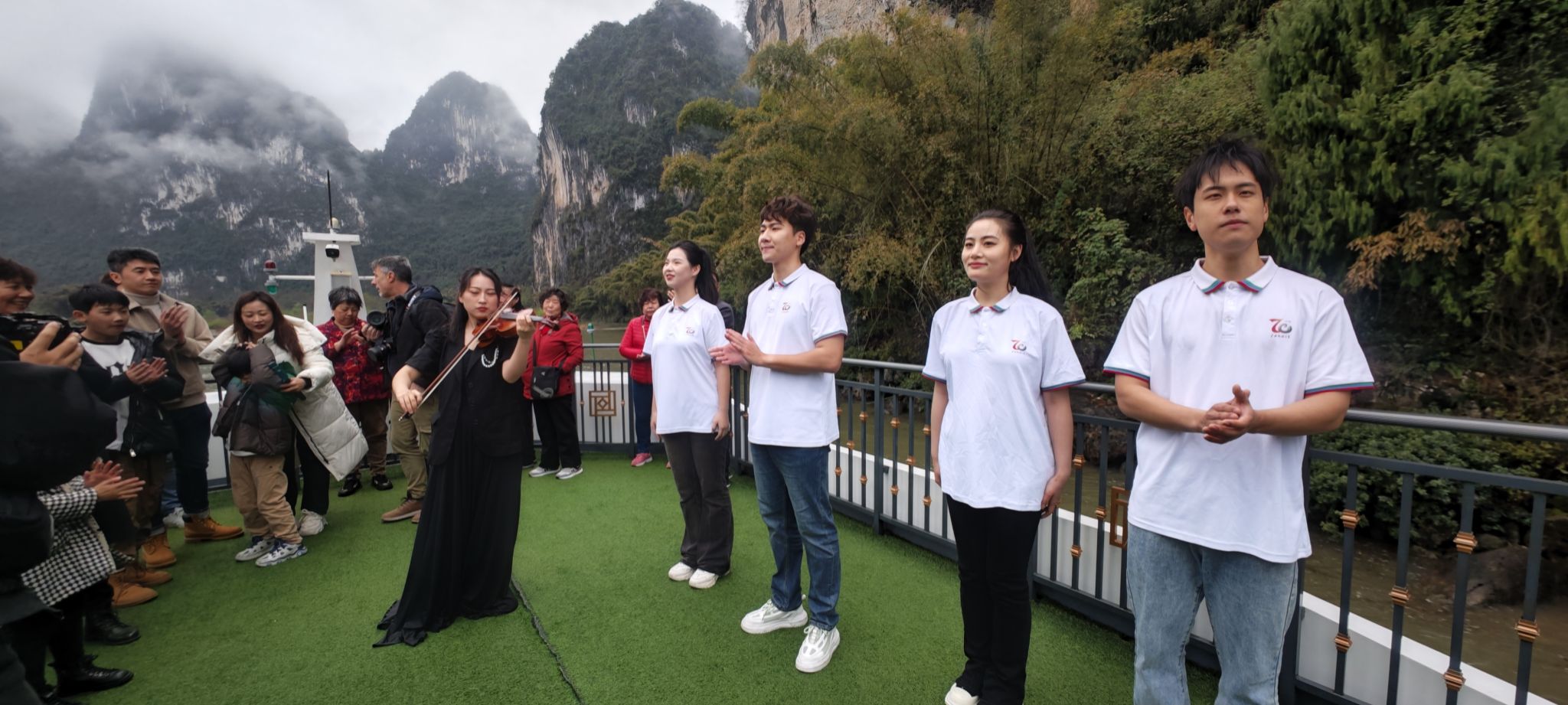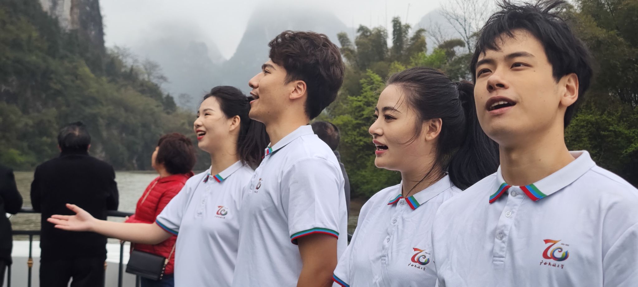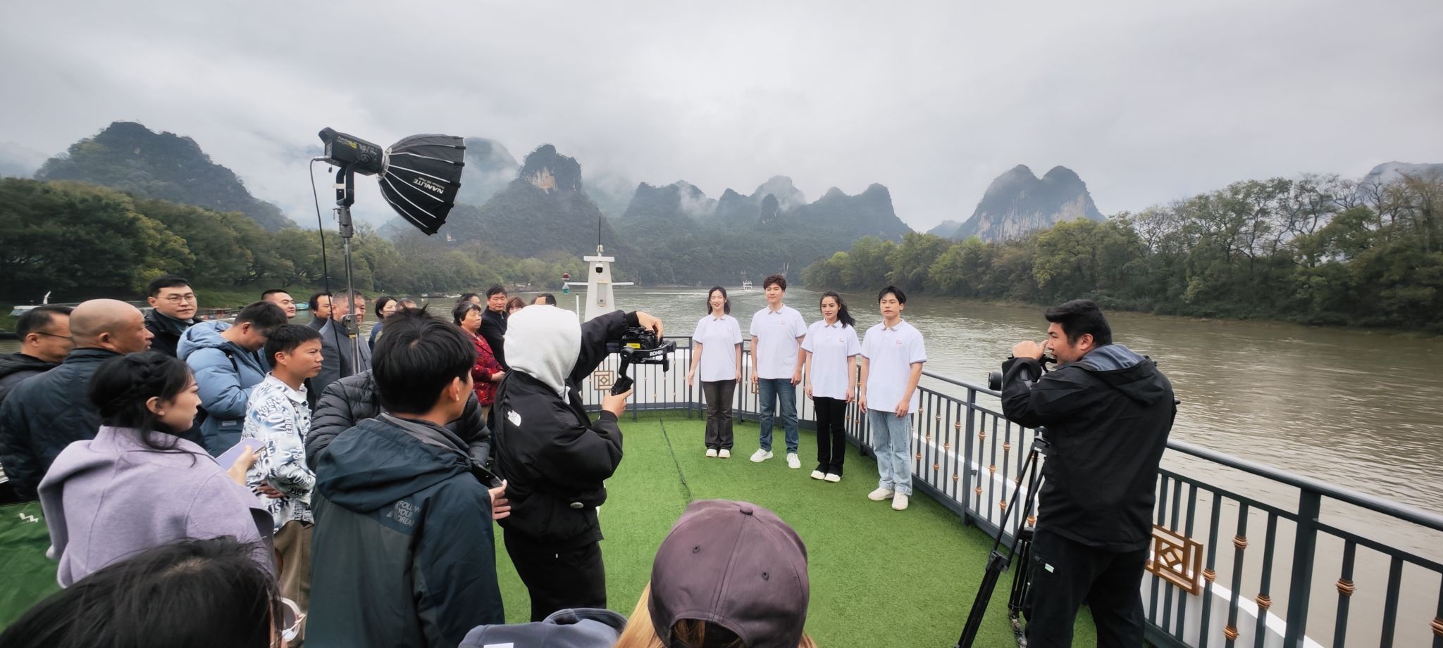 据了解,这四名学生参加拍摄的是第三集《心画》,内容为在漓江游轮上以快闪的形式朗诵贺敬之的诗歌《桂林山水歌》。该作品是诗人贺敬之创作的一首歌唱祖国壮丽河山的诗篇,也是我院播音与主持专业学生必练的篇目之一。全诗以情融景,借景生情,情景水乳交融,传达出了桂林山水特有的美。