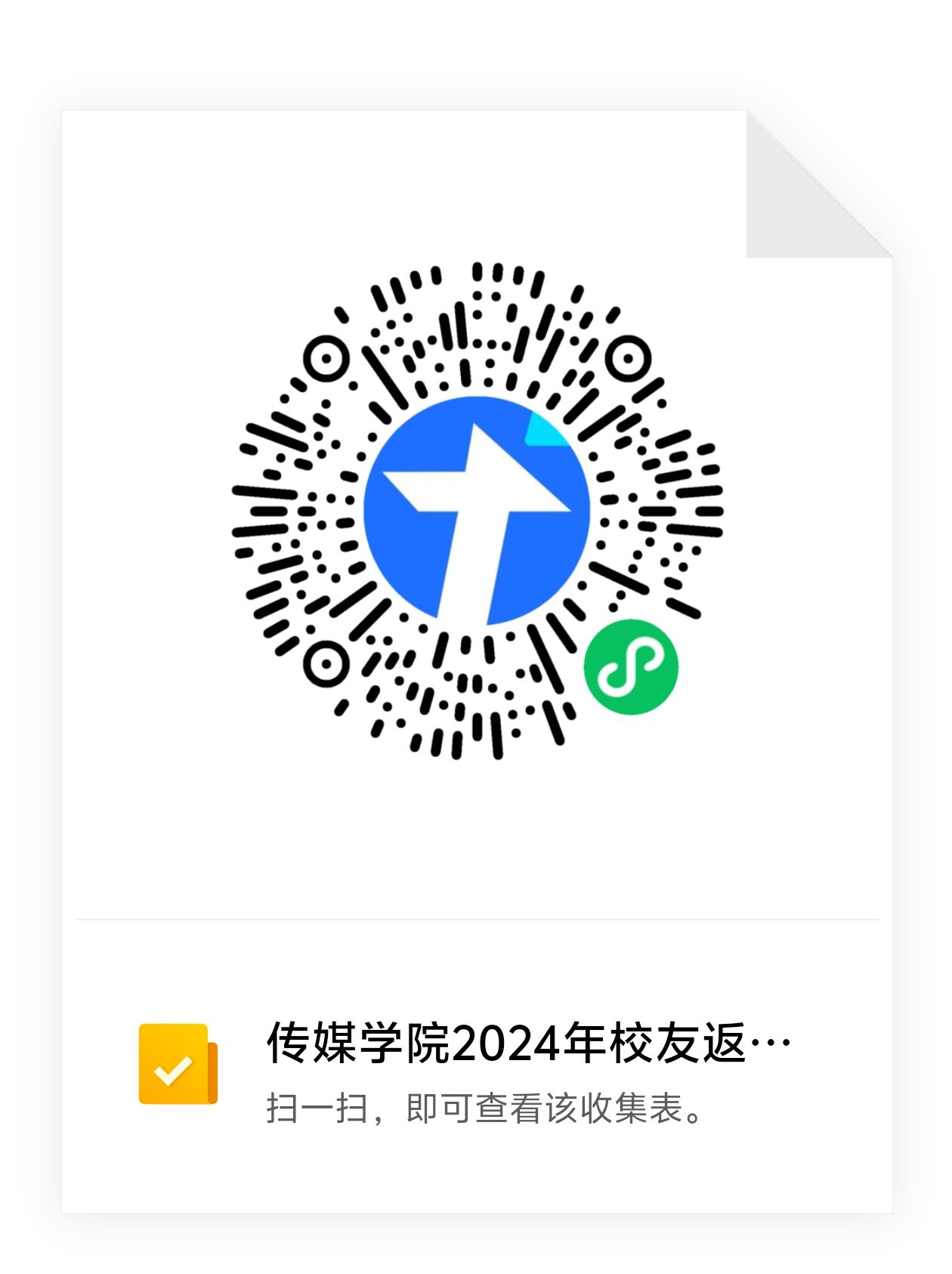 风雨同舟情谊重,薪火组传永不忘。为了更好地欢迎校友返校和组织筹备相关工作,现对返校校友活动参与情况予以收集,请识别以下二维码填写返校信息。