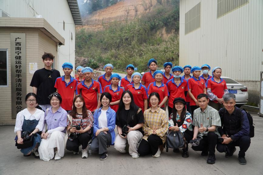 3月29日,为落实立德树人根本任务,全面推进课程思政建设,在学院教工第二党支部党员、广播电视编导教研室主任万益杰,新闻学教研室主任胡洁虹及编导专任教师李荣胜的组织与指导下,我院2023级新闻与传播专业研究生积极行动,赴南宁五塘健运好帮手清洁服务有限公司开展了一场以“致敬坚韧力量”为主题的拍摄活动。活动深度聚焦残障工人生活及职业发展,弘扬新时代奋斗精神。