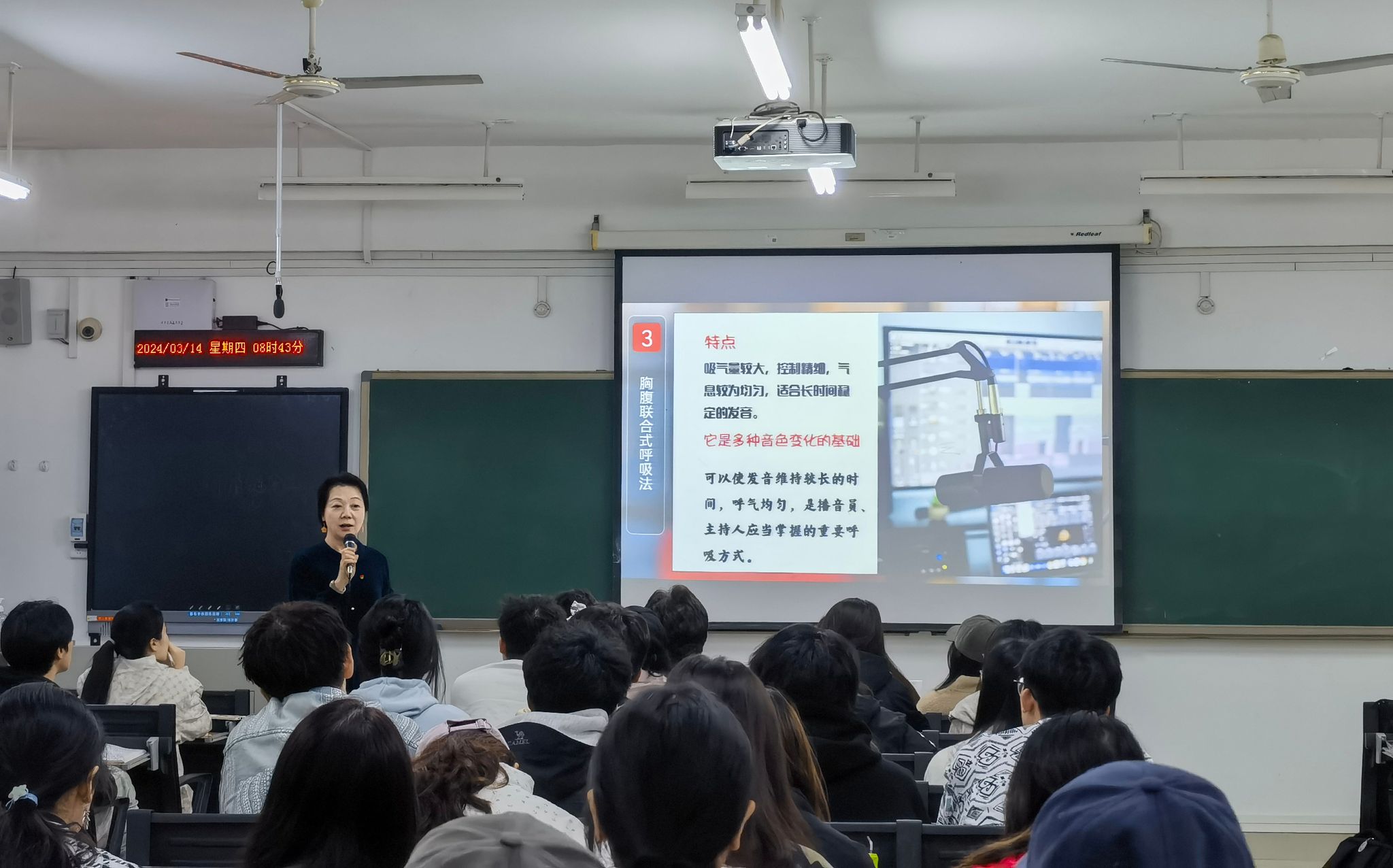 为了让学生们更加直观地感受播音主持呼吸方式在语言表达中的魅力,公开课还设置了实践环节。学生们在主讲老师的指导下,尝试运用不同的呼吸方式进行发声练习,并分享了自己的感受和体会。通过实践,学生们不仅掌握了正确的呼吸方式,还深刻理解了呼吸方式与语言表达之间的紧密联系。