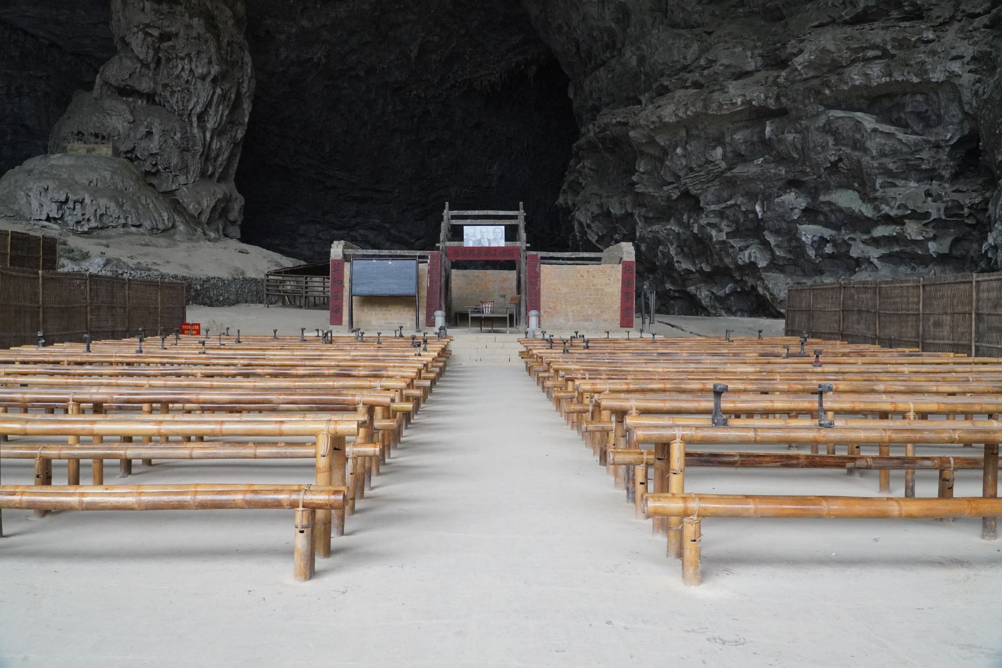 走进列宁岩,8千多平方米洞内,宽敞明亮,可纳千人;两组12排竹制桌椅按当年讲习所的原貌整齐摆放,正前方是昔日的讲台和教员的宿舍。师生们系统了解了当年韦拔群在台上讲课、与当地人民群众共渡难关的那段峥嵘岁月。