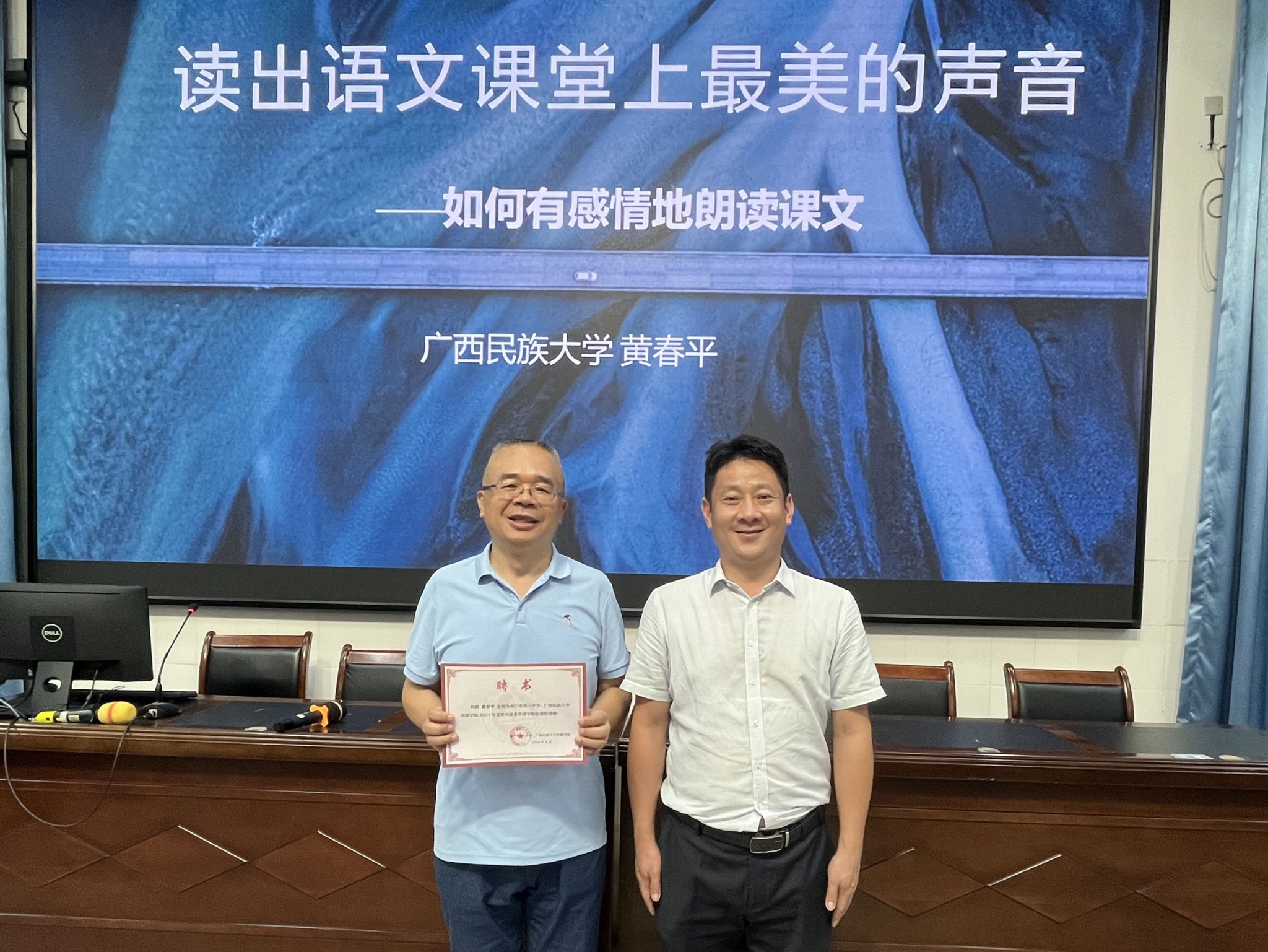 (图为南宁市第八中学为黄春平老师颁发聘书)