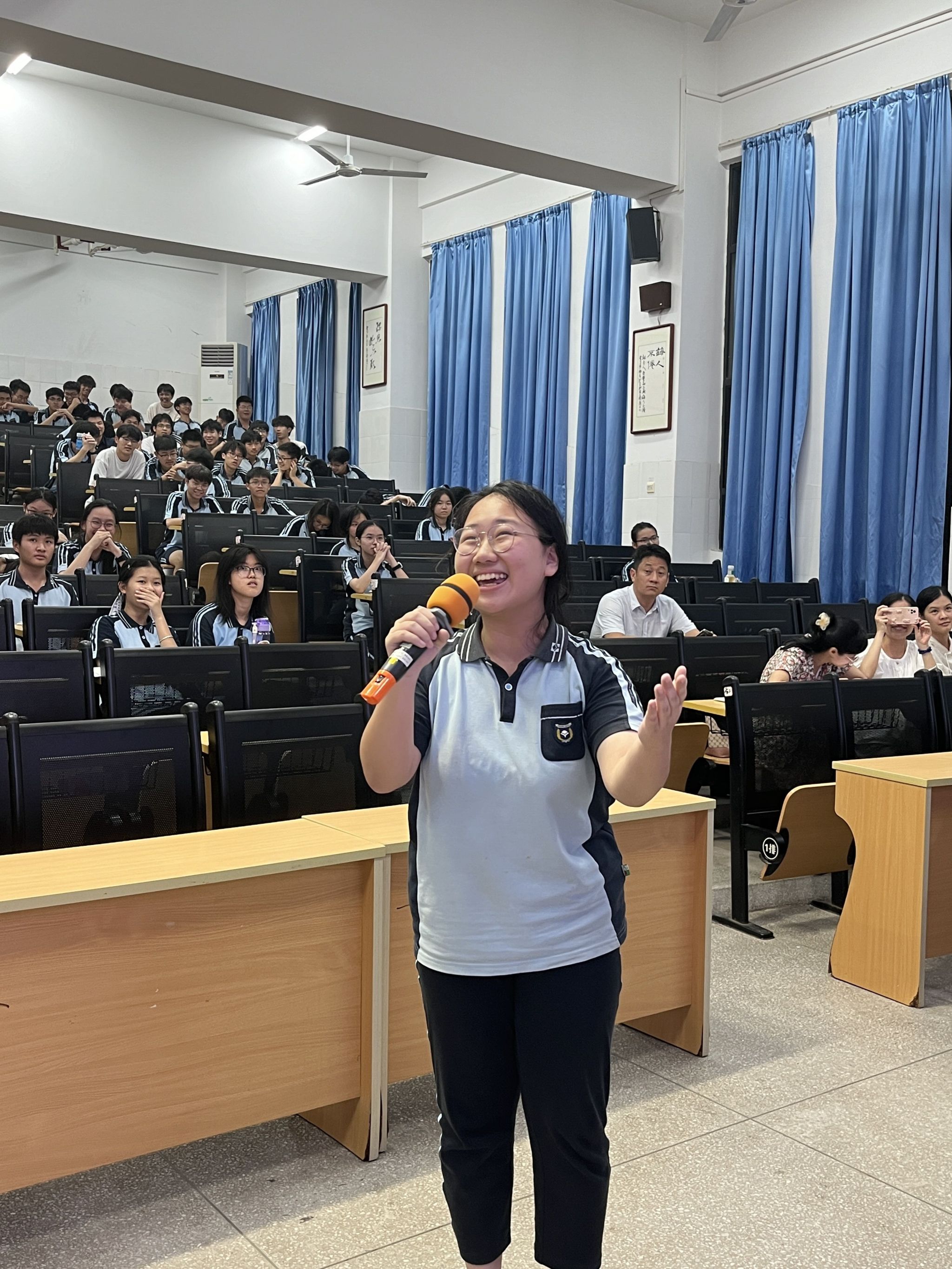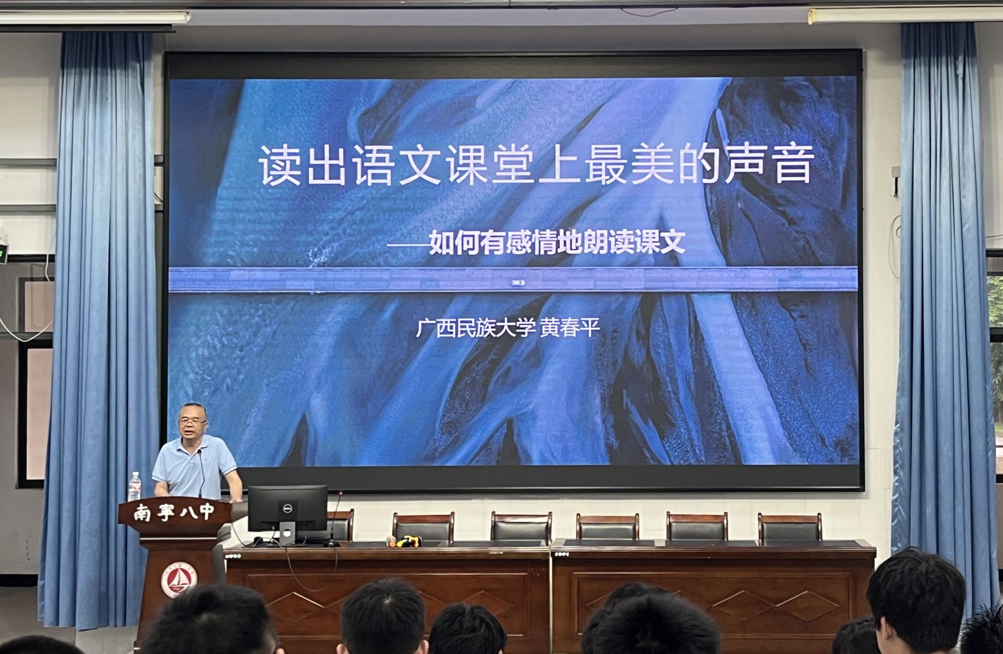 6月26日晚,我院播音与主持艺术专业负责人、播音指导黄春平为南宁八中高一、高二年级的两百余名师生带来了一场别开生面的朗读讲座。讲座为本学期我院教工第二党支部与南宁市第八中学共建的校本课程《视听艺术》划上了一个圆满的句号。