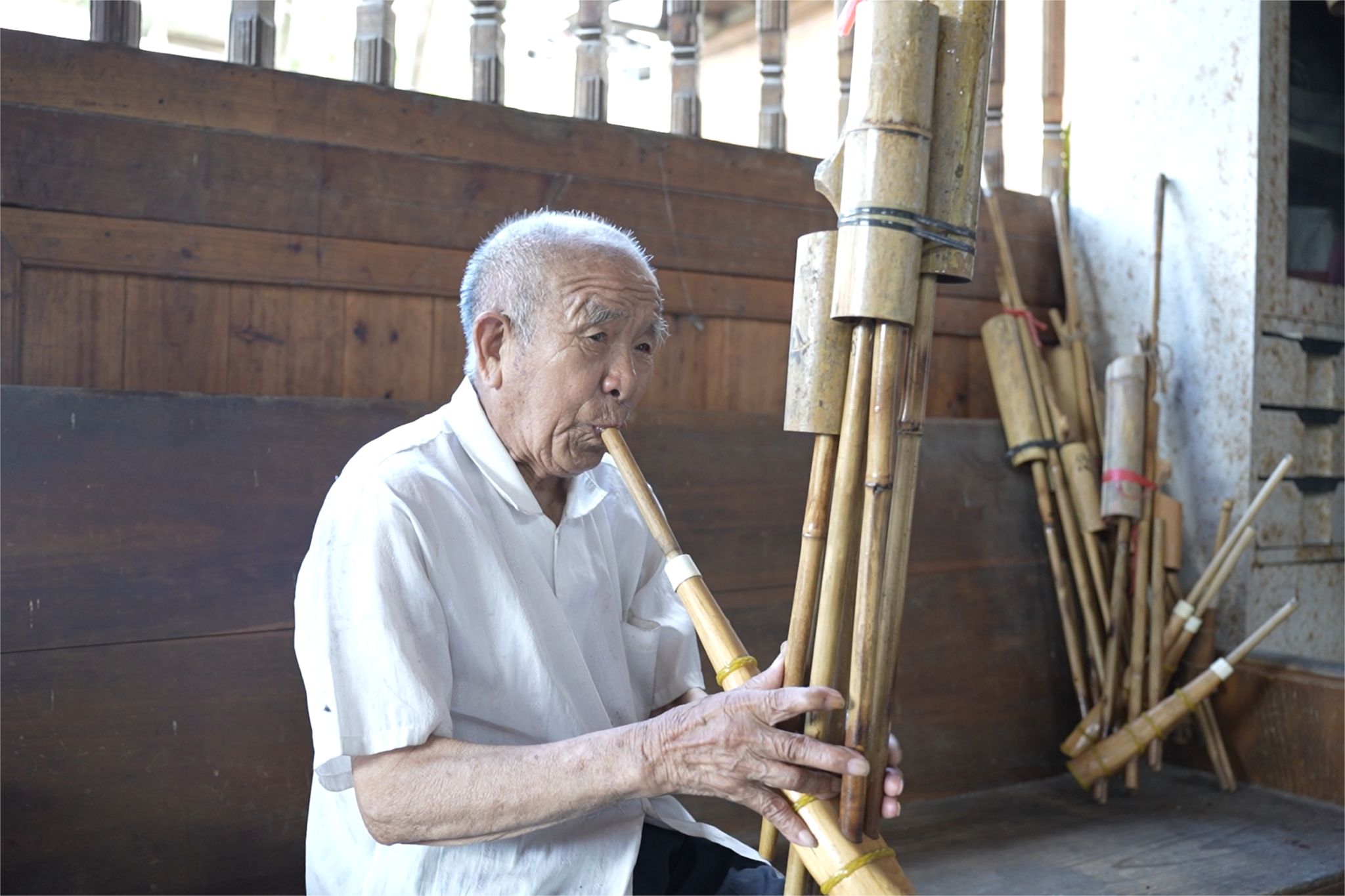 (侗族村民吹芦笙)