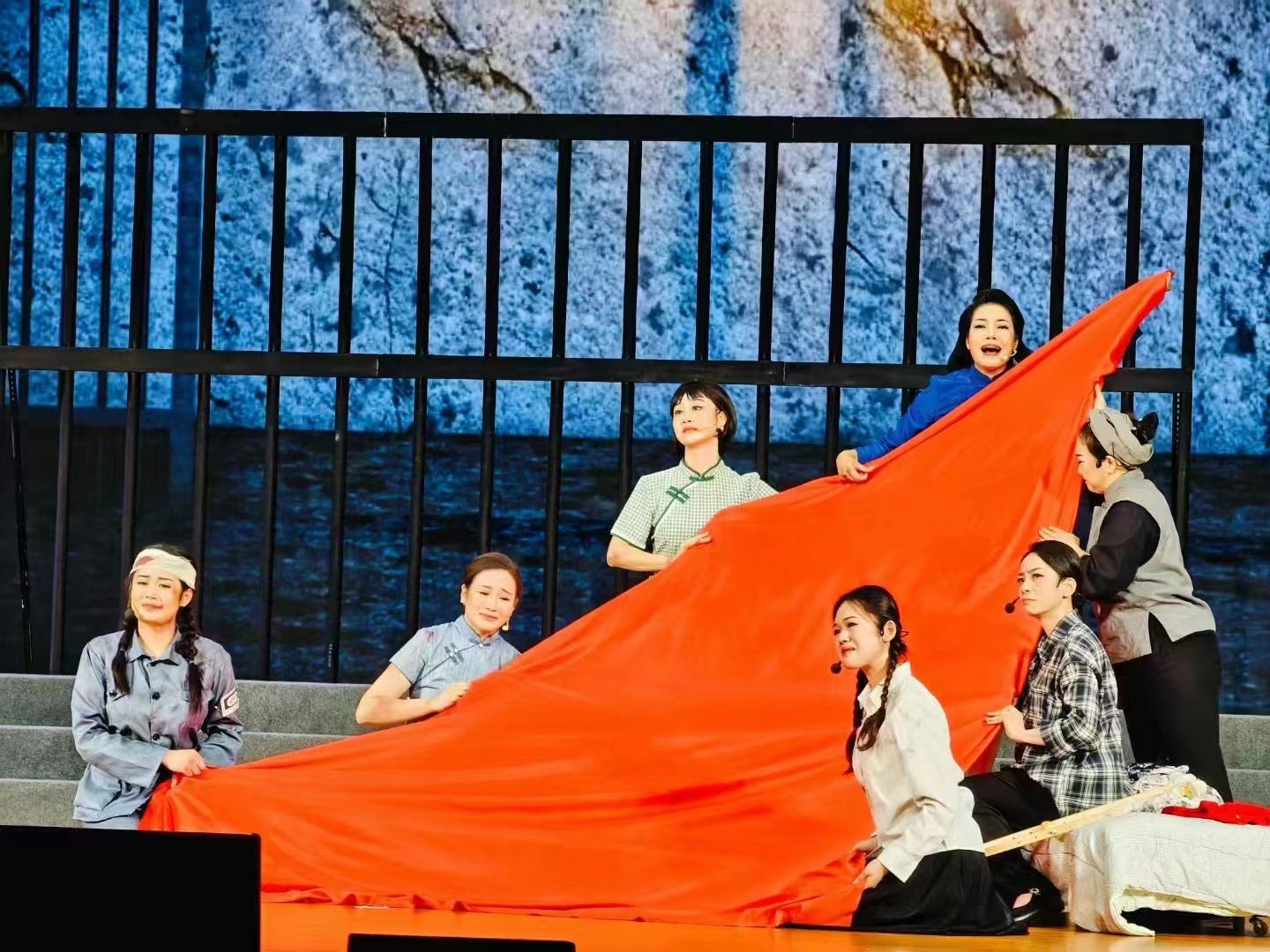 歌曲《红梅赞》的激昂旋律更是将整场演出推向了高潮。当“红岩上红梅开,千里冰霜脚下踩,三九严寒何所惧,一片丹心向阳开”的歌声响起时,观众的情绪推向了高潮,现场爆发出热烈的掌声。
