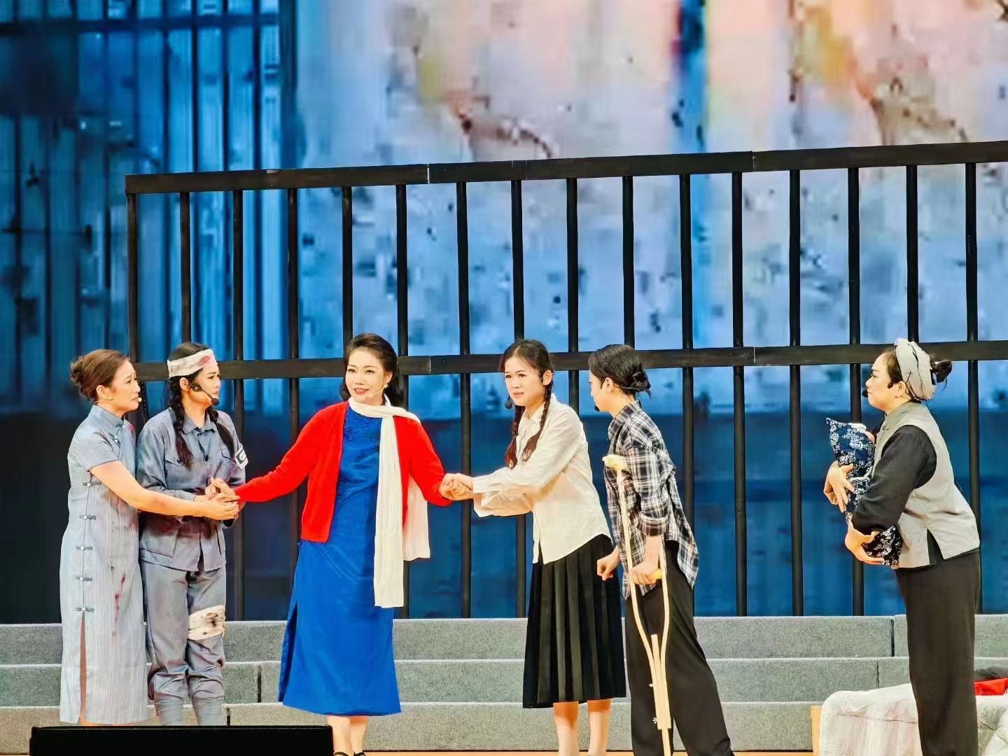 看到江姐在狱中绣红旗,深情唱出“线儿长,针儿密,含着热泪绣红旗,热泪随着针线走,与其说是悲,不如说是喜”,观众们的眼眶湿润了。这段唱词不仅表达了江姐对新中国的热切期盼和对革命事业的无限忠诚,也深深感染了现场的每一个人。