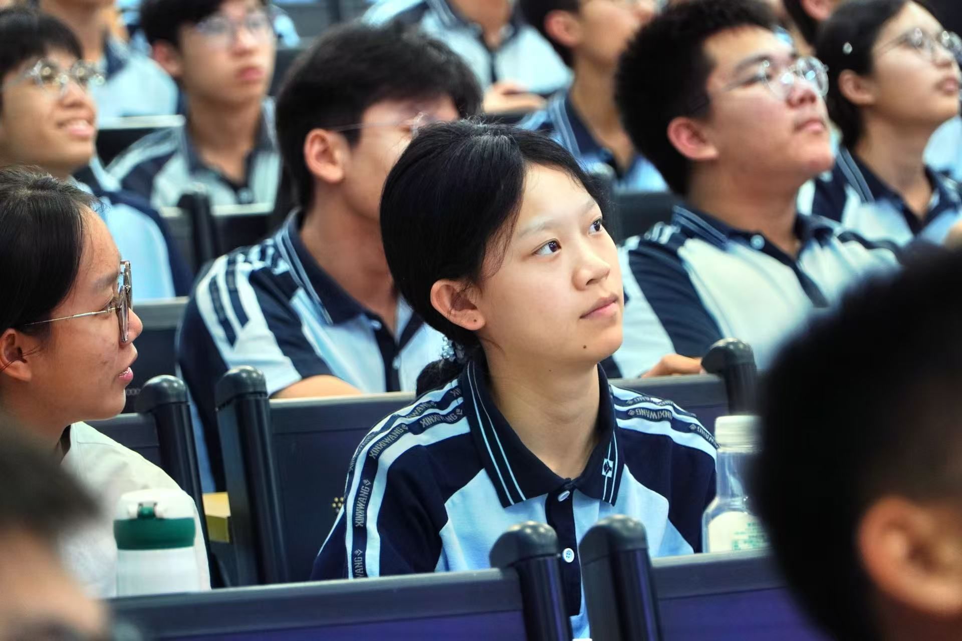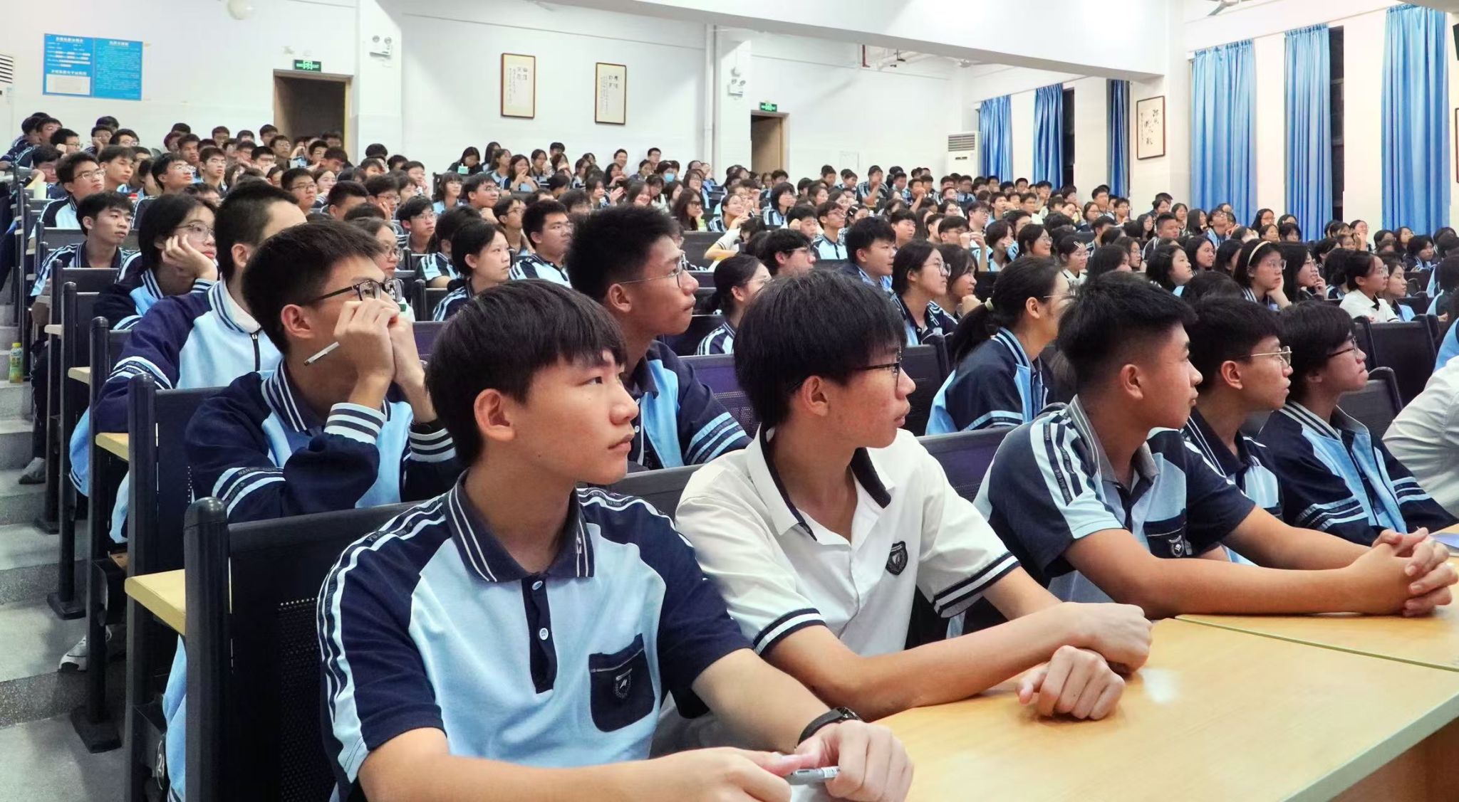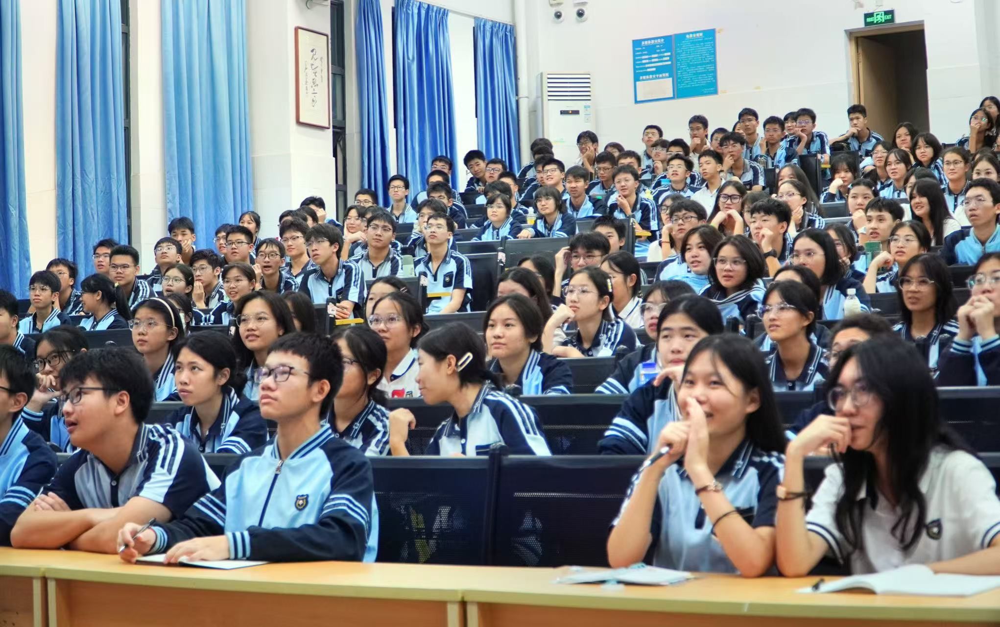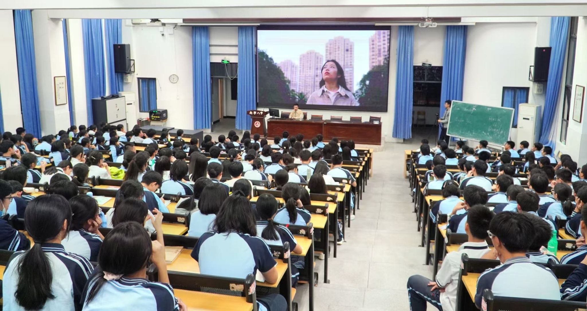 讲座在八中问韶楼报告厅举行,现场座无虚席,学生们满怀期待。万益杰老师从短视频的时代背景出发,阐述了短视频作为信息传播的重要载体,对于传承文化、弘扬正能量、讲好中国故事的重要意义。他提到:“每一部短视频都是一个小小的窗口,能够让世界看见中国青年的风采,听见中国青年的声音”。