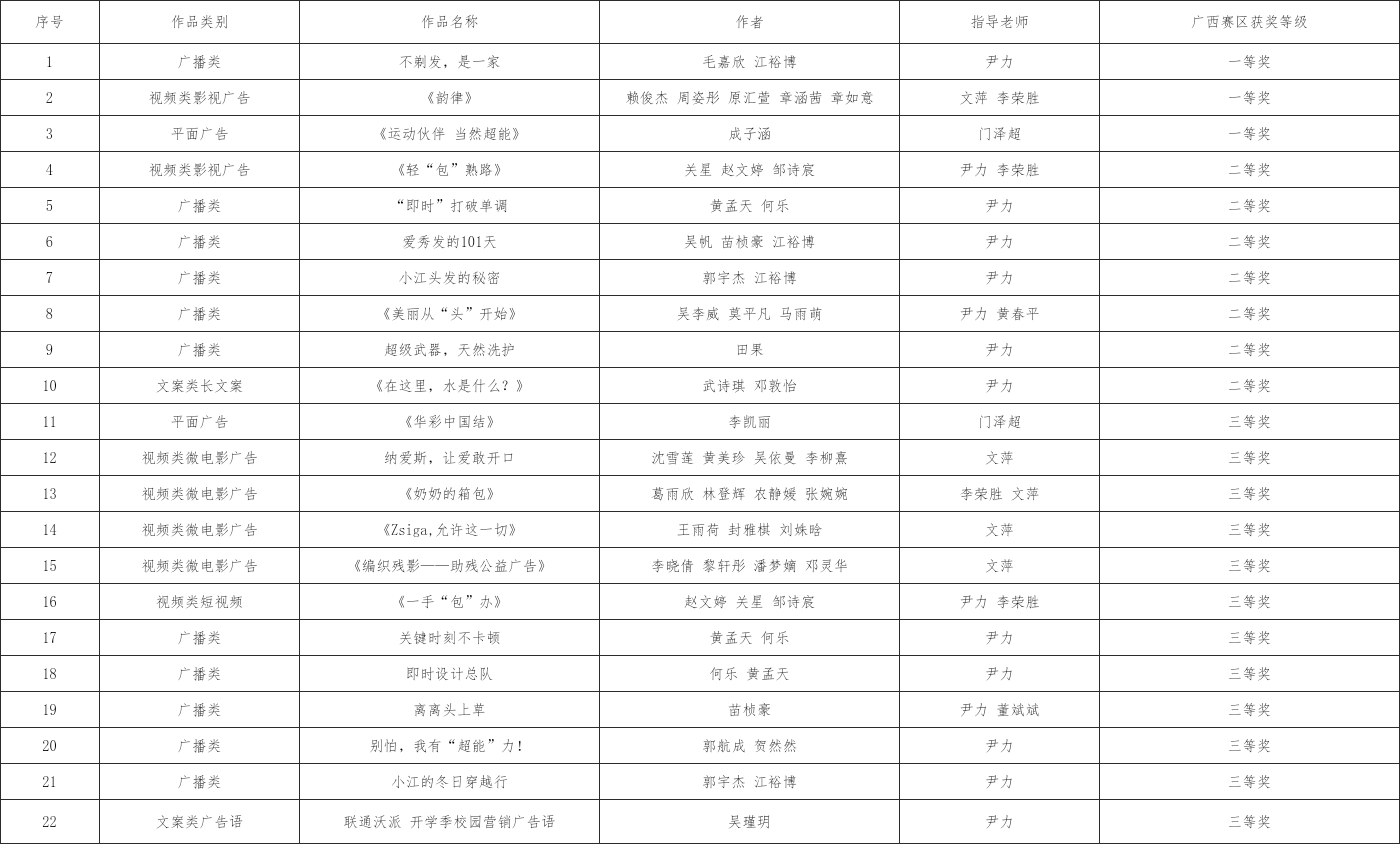 第16届全国大学生广告艺术大赛广西赛区支部教师指导获奖名单